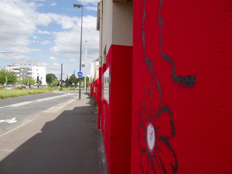 En attendant la démolition, le promoteur a fait peindre les murs en rouge, à la Croix-Bonneau