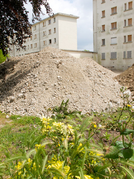 Devant l’immeuble « abbé Pierre », les travaux s’engagent.