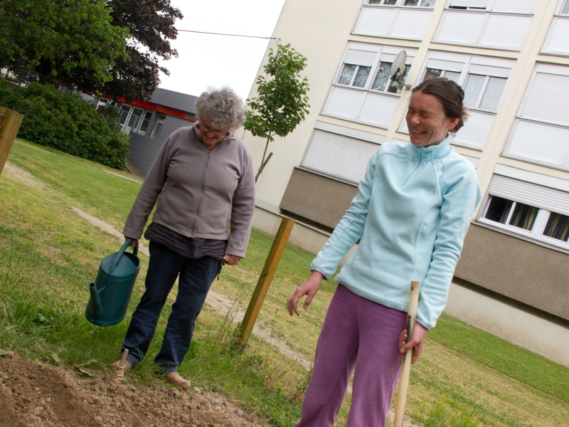 Déjà bonnes jardinières, Daniela et Nicoleta s’activent avec Marie Marsac