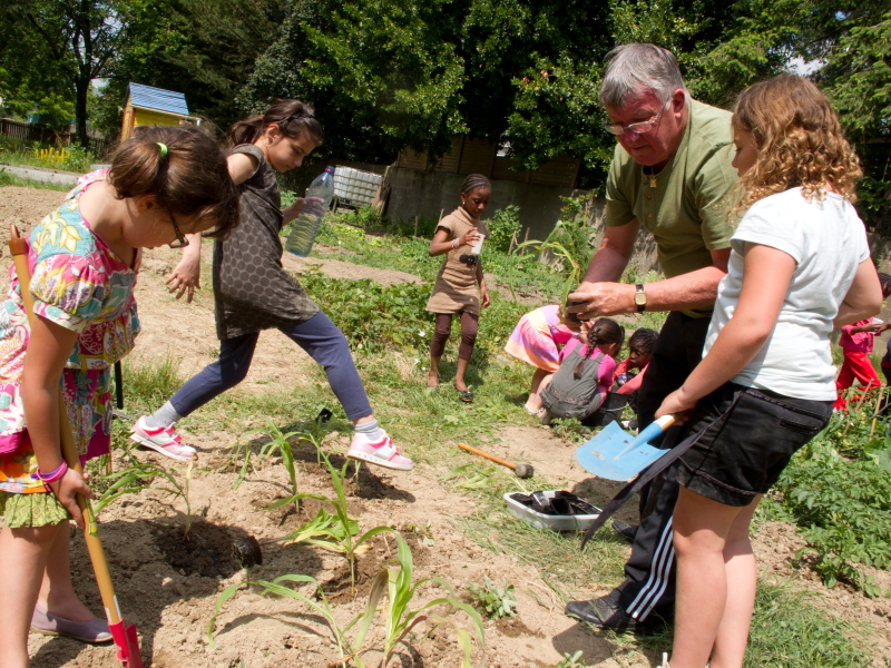 Pendant les vacances, des enfants du centre aéré viennent s’initier au jardinage
