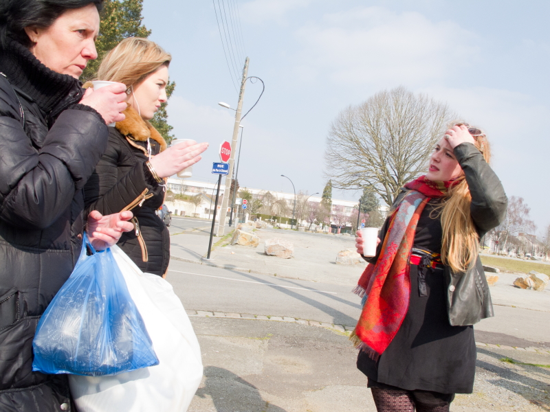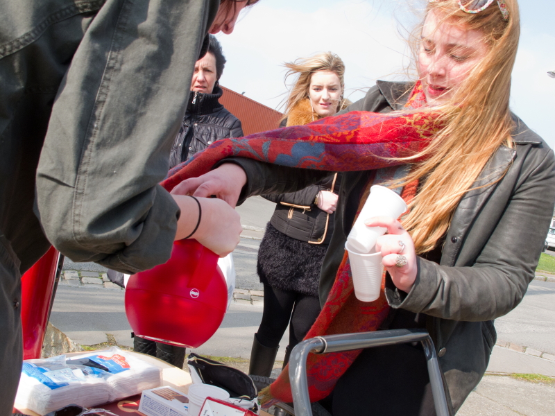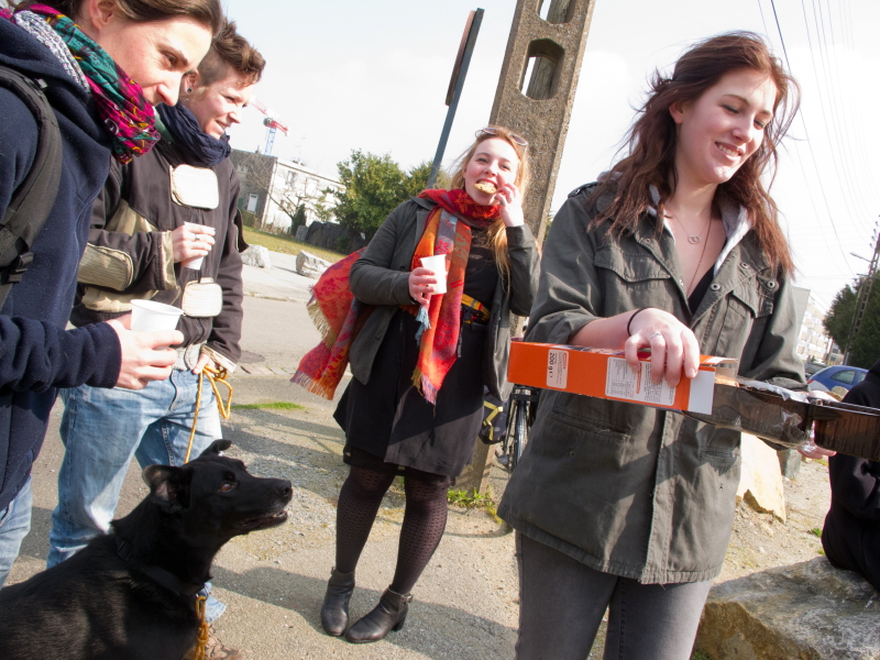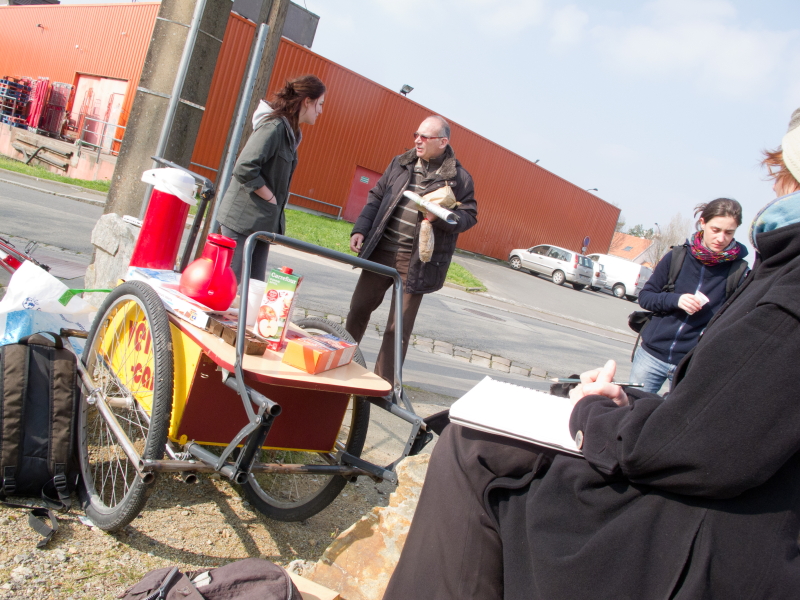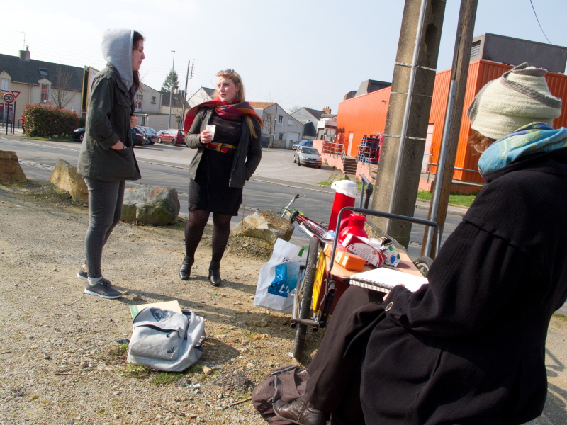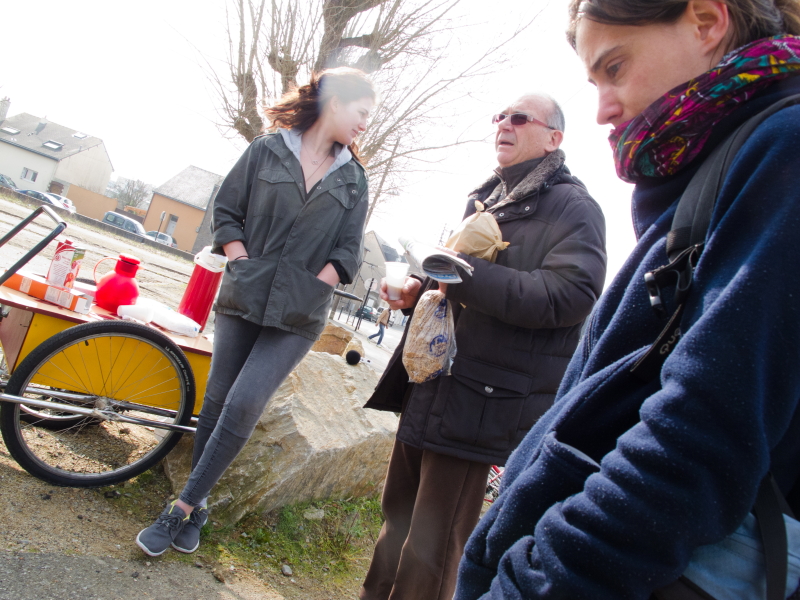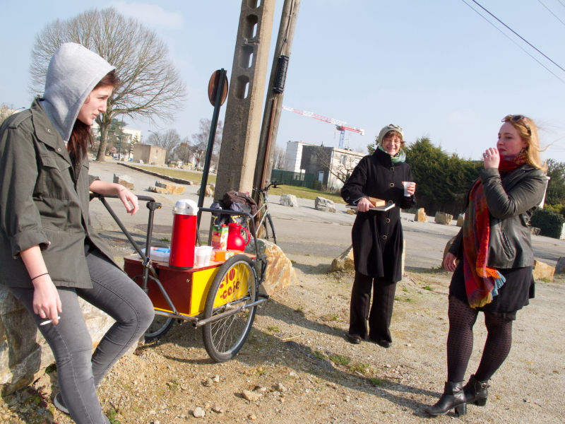 En dépit du vent glacial, autour du Vélo Café, les rencontres sont chaleureuses…
