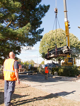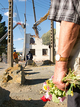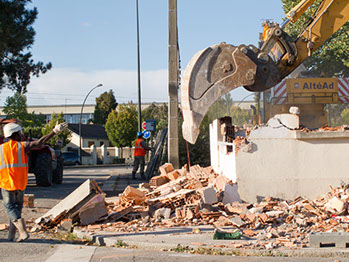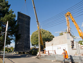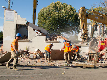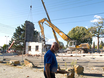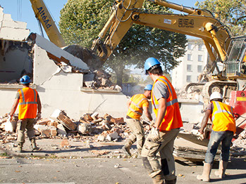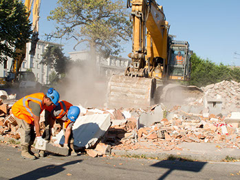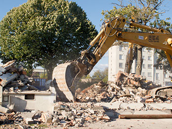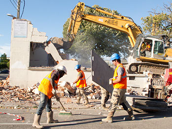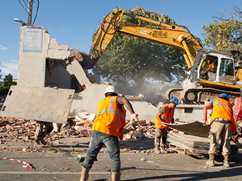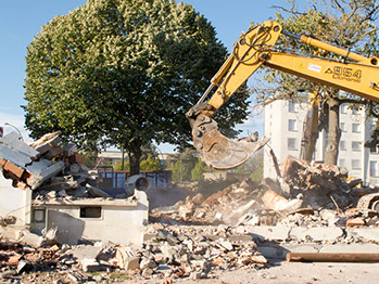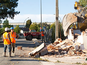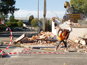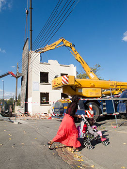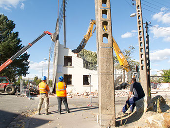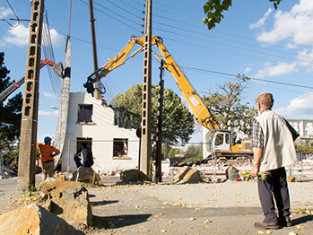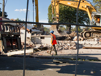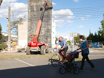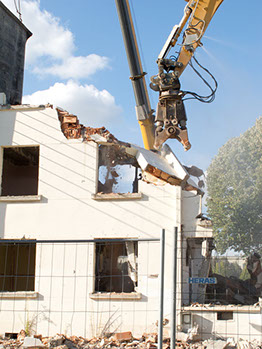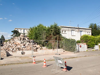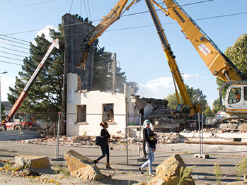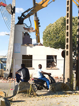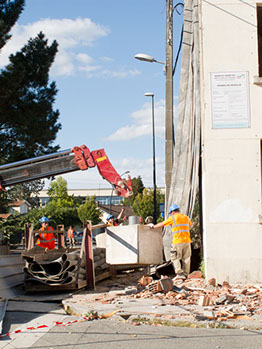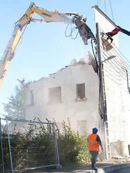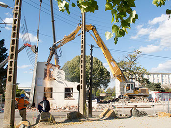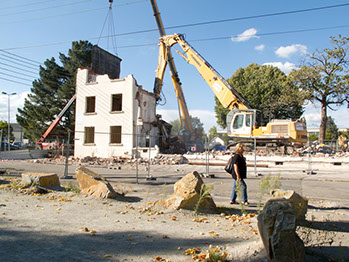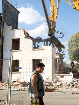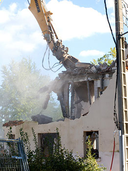 Le 18 septembre 2014, après midi. Démolition d’un bâtiment de la rue du Fer à cheval