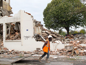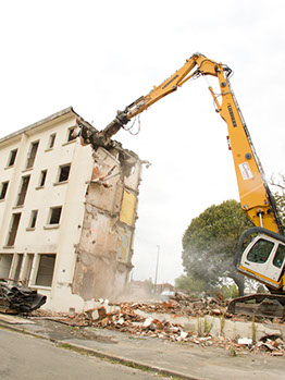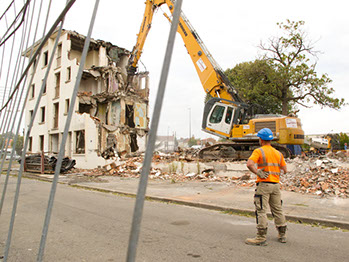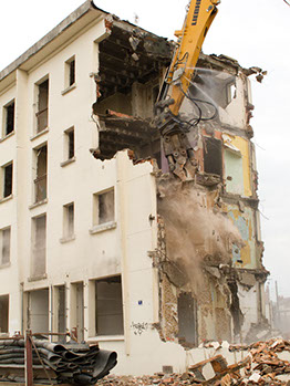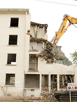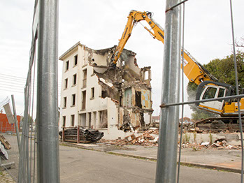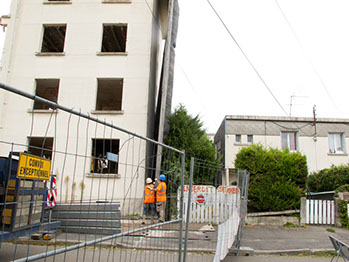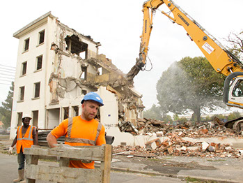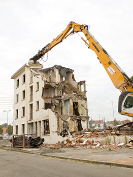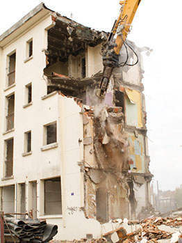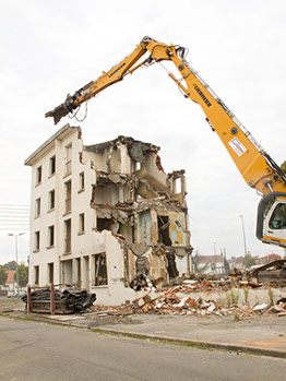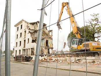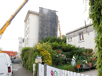Le 17 septembre 2014, après midi. Démolition d’un bâtiment de la rue du Fer à cheval