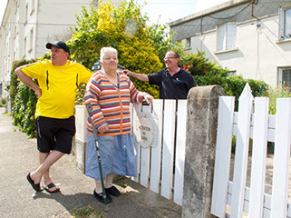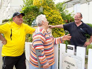 Liliane, un de ses fils et un voisin