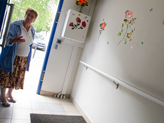 Dans une entrée collective de l’immeuble, décoration « maison »