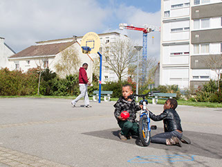 Rue de Saint-Brévin, aux Bourderies, lieu de passage et de jeux partagés.