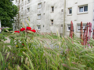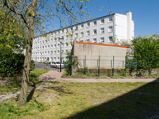 Le côté de l’immeuble « abbé Pierre », vu du coin de la rue Etienne-Mahot