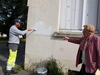 Durant la « Déambulation Bourderies », organisée pour les habitant.es du quartier. Quand Josiane n’est pas d’accord, elle n’hésite pas à le dire à qui de droit !