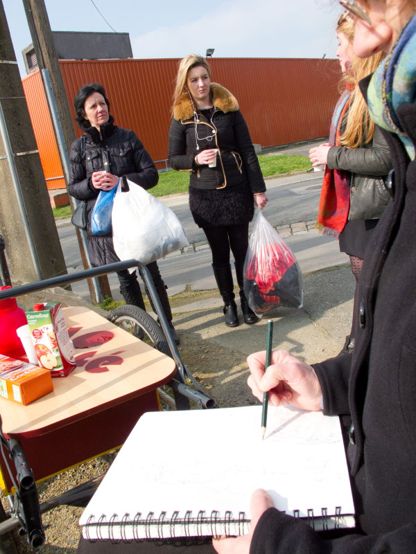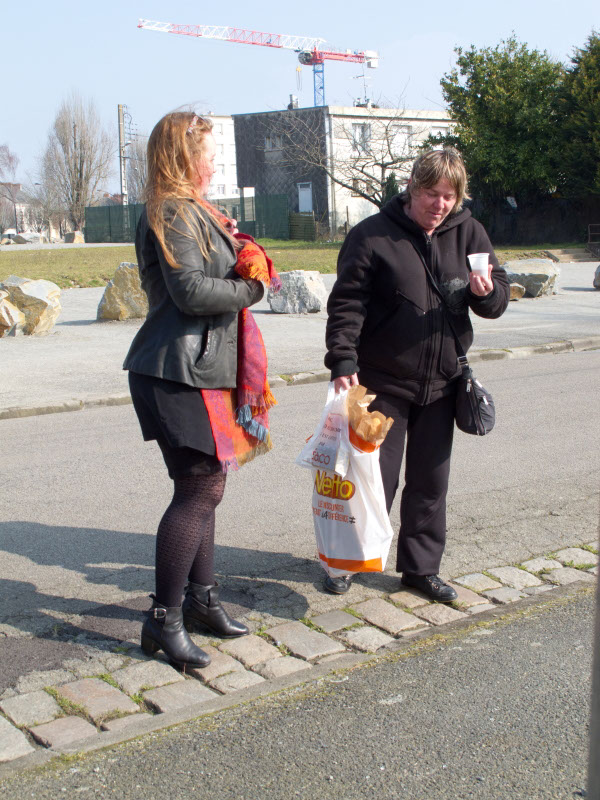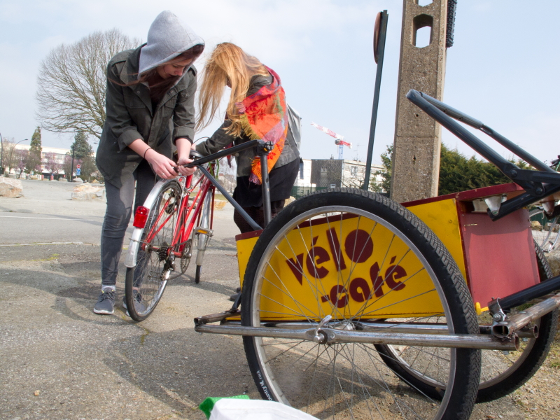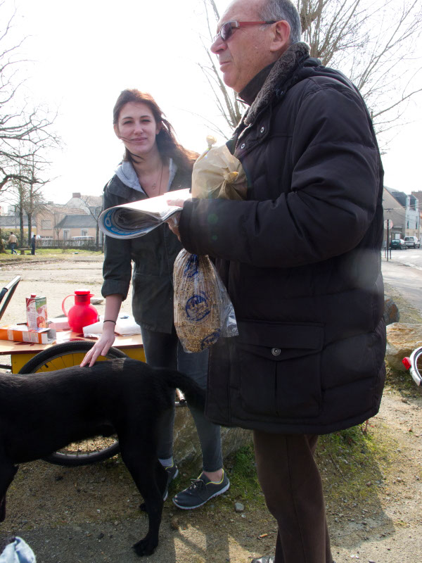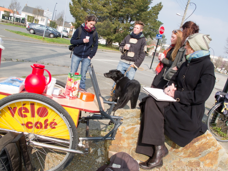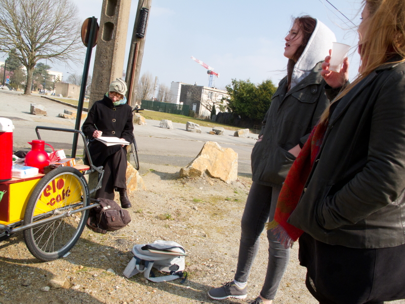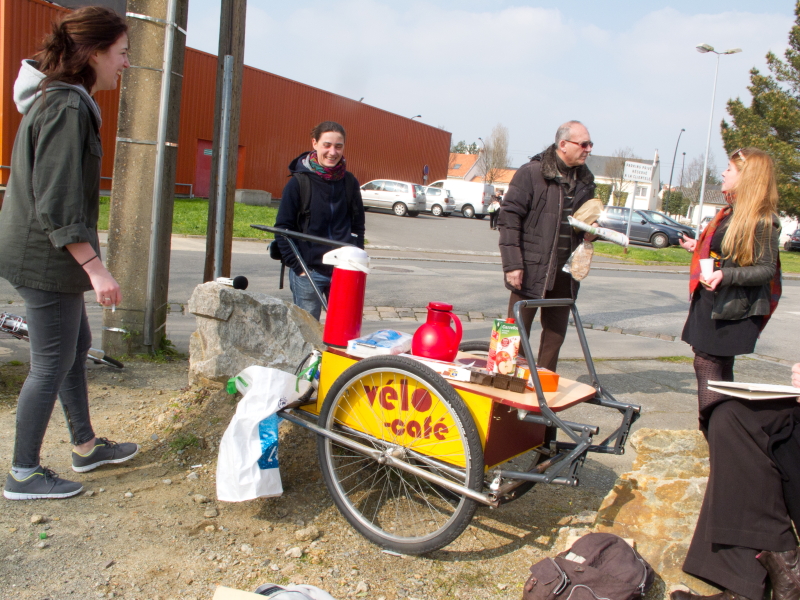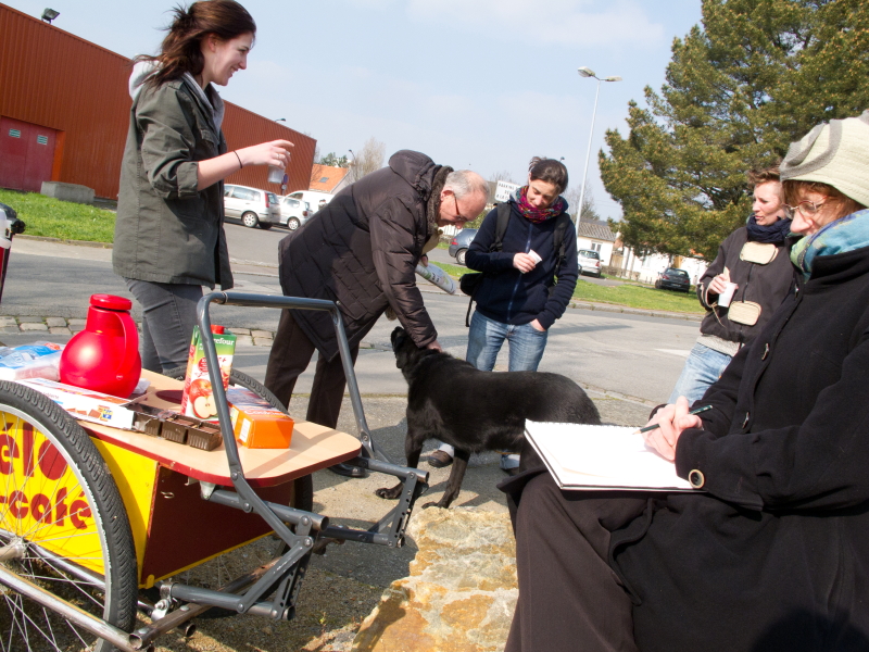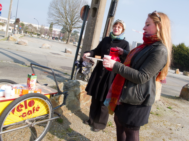 En dépit du vent glacial, autour du Vélo Café, les rencontres sont chaleureuses…